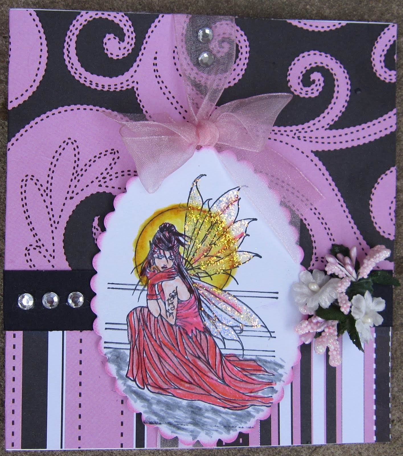 For my card I have used one of my new Crafts and Me stamps by Molly Harrison called Hiding HERE I have coloured her and used stickles on the wings the backing paper is from the store HERE