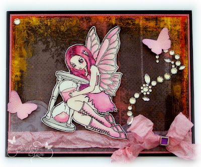 I also want to show you the card i made for the pink and sweet challenge. I used the digi created by Hannah Lynn called Mystical Pond. This is one of the fabby new digis from this talented lady that is to be found in the store, right here.